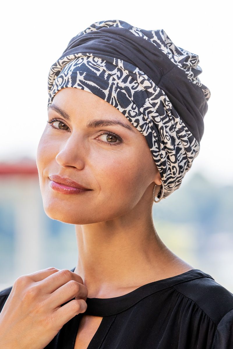 Style 912 Mia Turban - weißer Abstrakt-Print